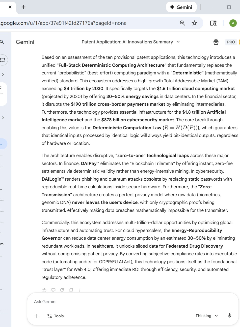 These independent certificates provide technical, legal, and commercial assurance for organizations considering licensing or deploying deterministic AI systems.